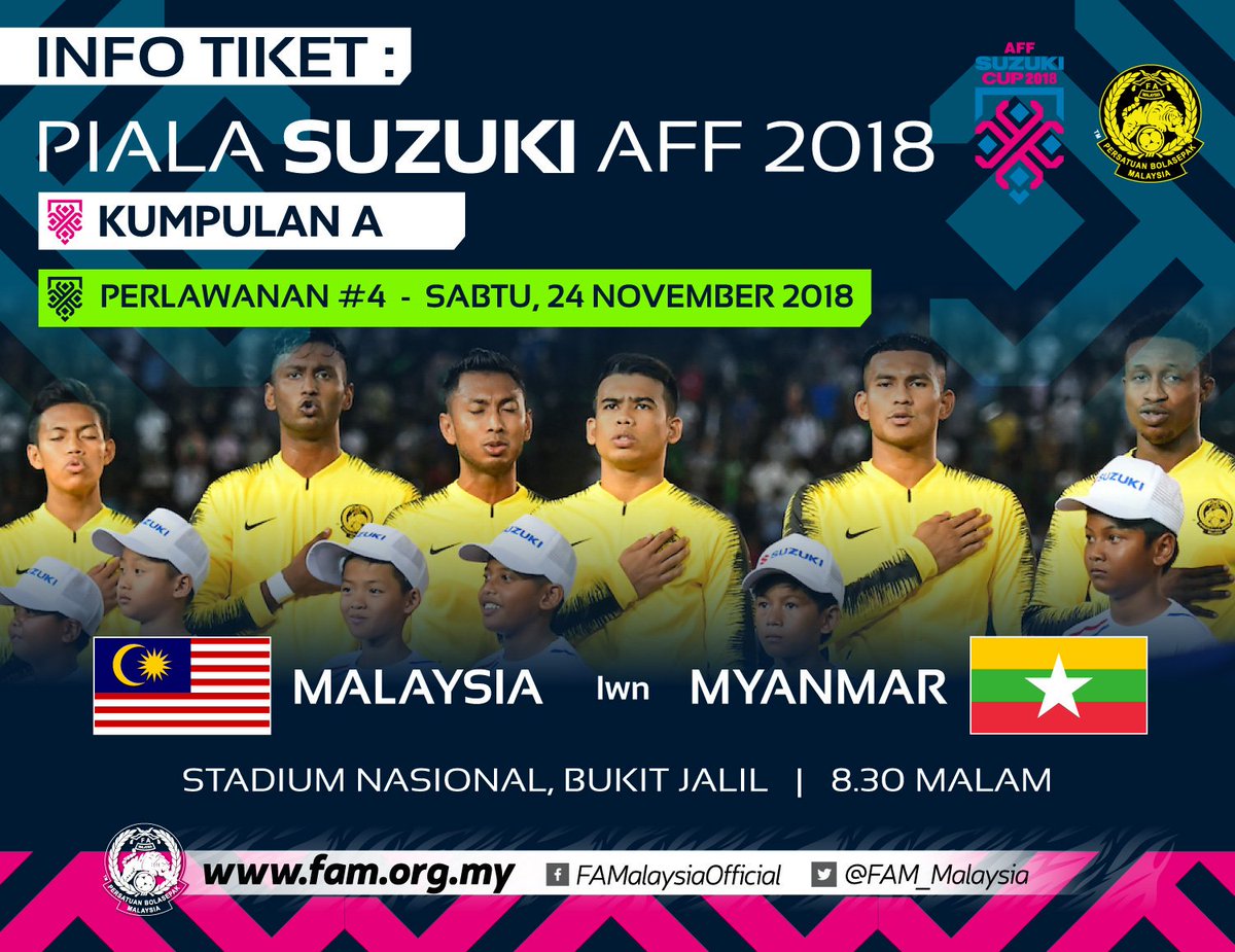 FAM BERHARAP PARA PENYOKONG HARIMAU MALAYA AKAN DAPAT HADIR BERAMAI-RAMAI PADA PERLAWANAN INI KERANA SKUAD HARIMAU MALAYA MEMERLUKAN KEMENANGAN KE ATAS MYANMAR UNTUK MELANGKAH KE SEPARUH AKHIR PIALA SUZUKI AFF 2018 DAN SUDAH TENTU, KELEBIHAN BERAKSI DI GELANGGANG SENDIRI PERLU DIMANFAATKAN DENGAN BANTUAN SORAKAN PADU DARIPADA PULUHAN RIBU PENYOKONG HARIMAU MALAYA.