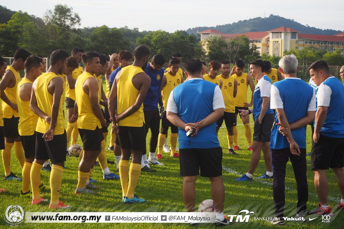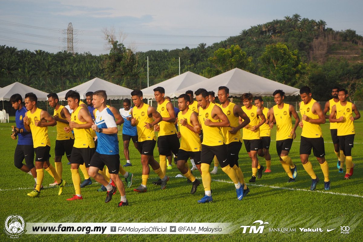Skuad kebangsaan kendalian Tan Cheng Hoe kembali turun menjalani latihan di Padang A, USIM, Nilai, petang tadi menjelang aksi terakhir Kumpulan A #AFFSuzukiCup18 lawan Myanmar di Stadium Nasional, Bukit Jalil, Sabtu ini.