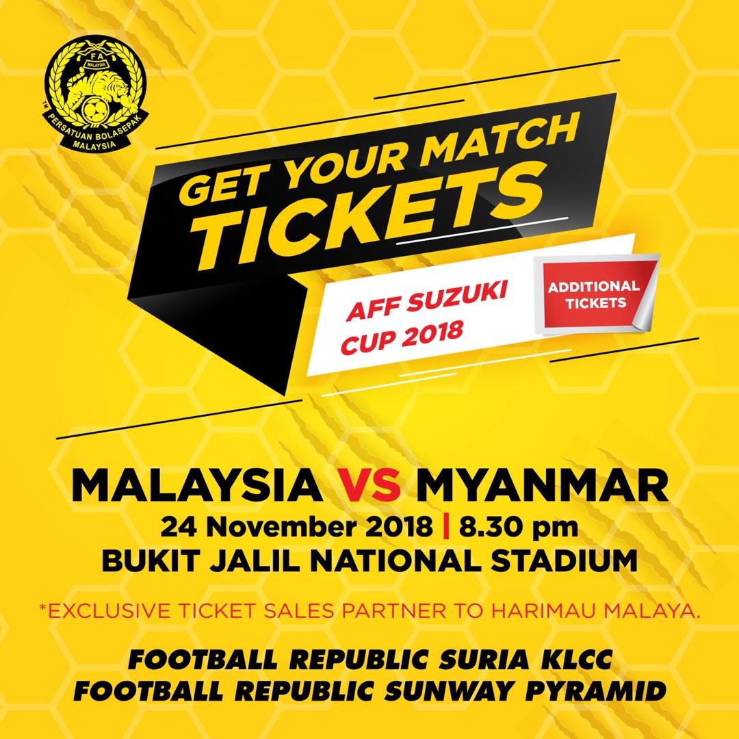 Tiket tambahan MALAYSIA VS MYANMAR boleh didapati di cawangan berikut bermula 4PM ini: